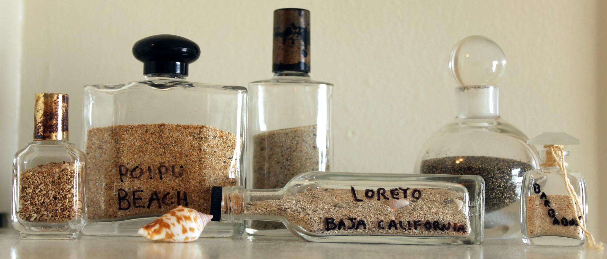 For years I've kept my sand collection in my bathroom medicine cabinet, each bottle labeled